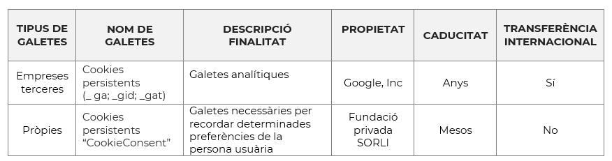 FUNDACIÓ PRIVADA SORLI utilitza les següents Galetes: